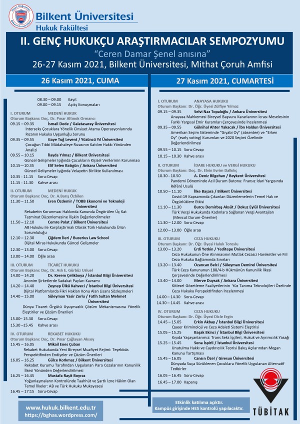 Bilkent Üniversitesi’nin düzenlediği II. Genç Hukukçular Sempozyumu’nda büromuz ortaklarında Mikail Enes ÇUBAN “Rekabet Hukukunda Yeni Bireysel Muafiyet Rejimi: Teşebbüs Perspektifinden Endişeler ve Çözüm Önerileri” başlıklı tebliği sunacaktır. Etkinlik katılıma açık olup, 26-27 Kasım tarihlerinde Bilkent Üniversitesi Mithat Çoruh Amfisi’nde gerçekleştirilecektir.